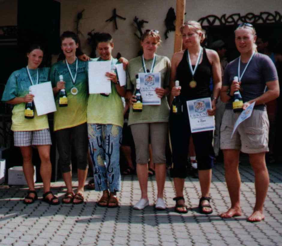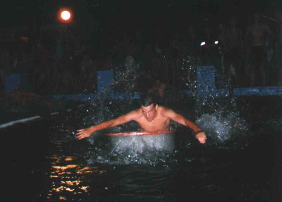 Nachdem unsere Triathleten über 1000m Schwimmen, 25 km Rad und 10 km Cross ihre Leistungen abgerechnet hatten, bereiteten sich unsere Badewannenspezialisten für ihren nächtlichen Höhepunkt vor. Am selben Tag gegen 21.00 Uhr starteten 16 Mannschaften a vier Teilnehmer zum Badewannenrennen. Unsere Jugend hatte sich viel vorgenommen, nachdem wir letztes und vorletztes Jahr immer den 2.Platz belegten. Unsere Männermannschaft und unsere Kinder verpassten beide um wenige Zentimeter die Qualifikation fürs Finale, was unsere Jugend spielerisch gelang. Der Finallauf mit sechs Mannschaften blieb spannend bis zum Ende. Mit einem kleinem Vorsprung siegte unsere Jugendmannschaft das Badewannenrennen 2001 in Sebnitz. (V.H.)