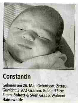 Am 26. Mai erblickte Constantin das Licht der Welt. Den glücklichen Eltern Babett und Sven Graap und natürlich Constantin alles Gute.