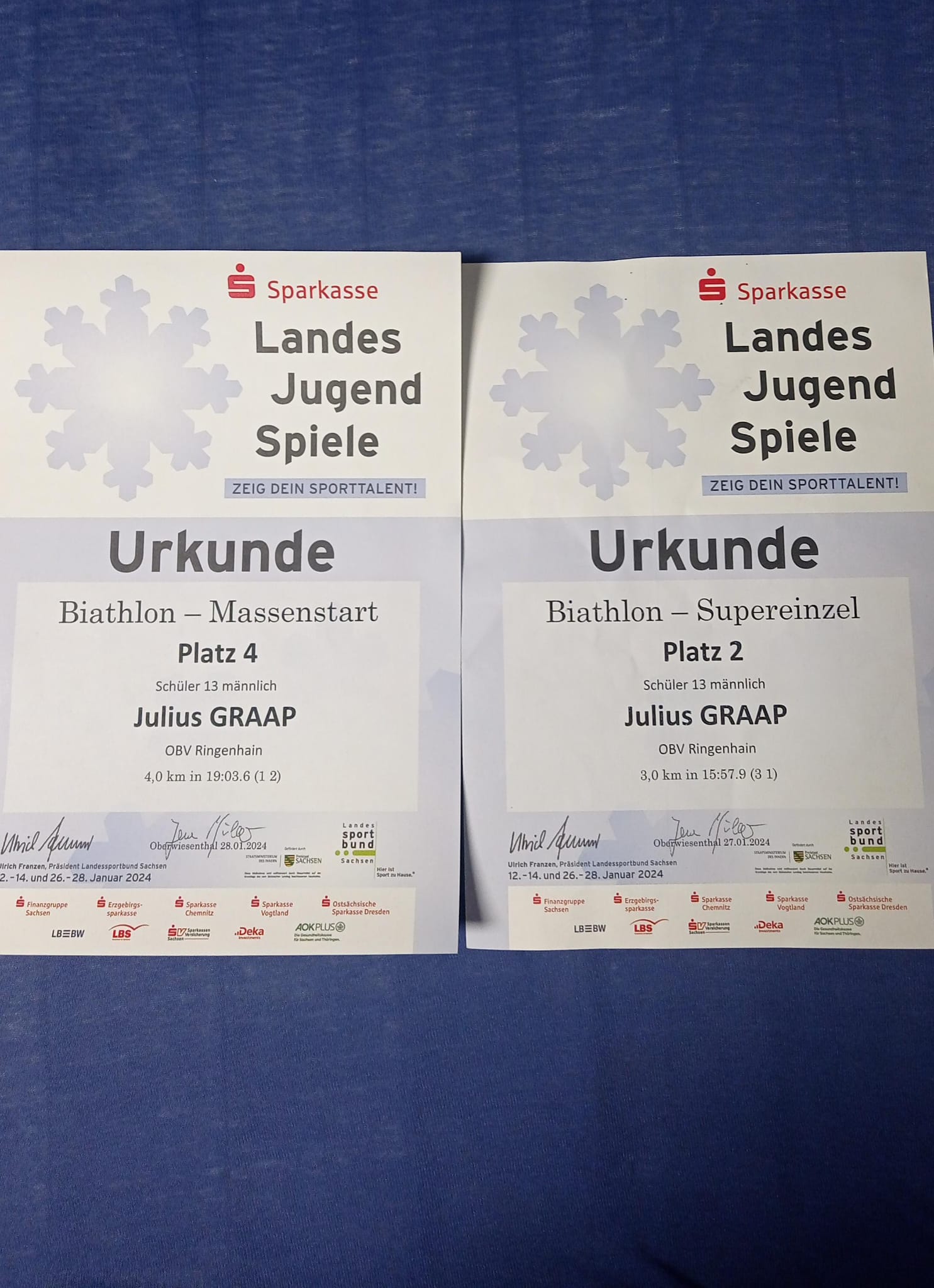 So ähnlich erging es auch Julius, der am letzten Wochenende in Oberwiesenthal zum Biathlon unterwegs war. Wenn er nicht auch in diesem Jahr auf ein Sportgymnasium in Altenberg gehen wollte, wäre er gar nicht in Oberwiesenthal gestartet. Aber auch er muss sich unter einem enormen Aufwand für sein persönliches Ziel, Leistungssportler zu werden, fit halten und bei solchen Wettkämpfen starten. Unsere anderen Vereinsmitglieder sind unter den widrigen Vorbereitungsbedingungen zu keinen Landesjugendspielen gefahren. Da steht auch der, unter den kranken finanziellen Entwicklungen, Nutzen nicht mehr für den extremen Aufwand. Schade. Aber eine Entwicklung im Nachwuchssport, die nach hinten los geht.
