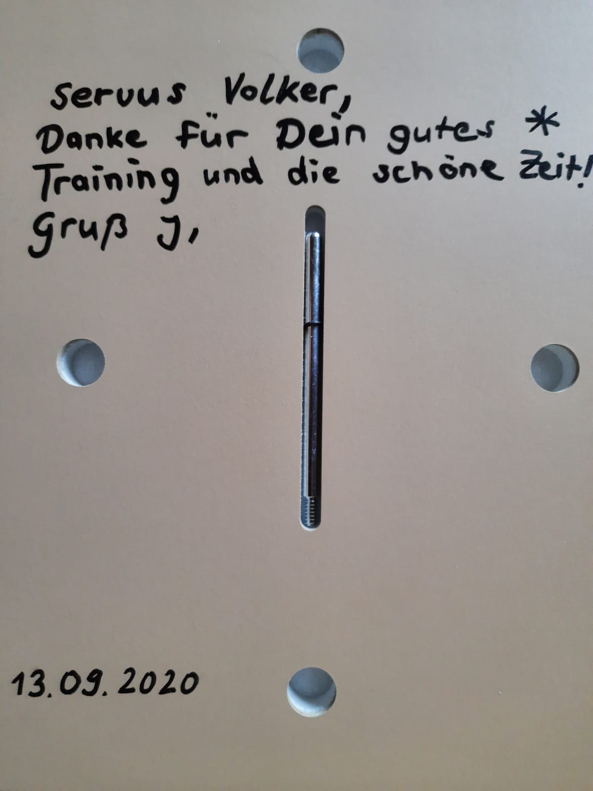 Da kam der reale Moment der Trennung. Dabei ist schon die eine oder andere Träne geflossen und ein kleiner Schmerz des Verlustes musste weggedrückt werden. Denn, wenn man viele gemeinsame Lebensjahre (6-8) miteinander verbracht hat, viele einmalige Erlebnisse im Wettkampf, im Training, in Trainingslagern, beim Klettern, den Radtouren gemeinsam gemeistert hat, schmiedet das zusammen. Man ist ganz einfach mit dem Trainer/Übungsleiter, mit der Trainingsgruppe, mit seinem Trainingsfreund unzertrennbar miteinander verwachsen. Und diese Bande muss man nun lösen. Das ist schon ein großer Verlust.