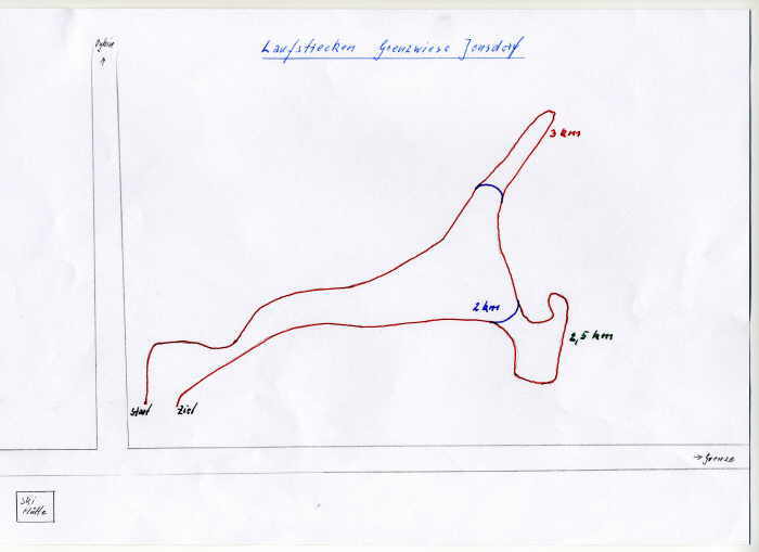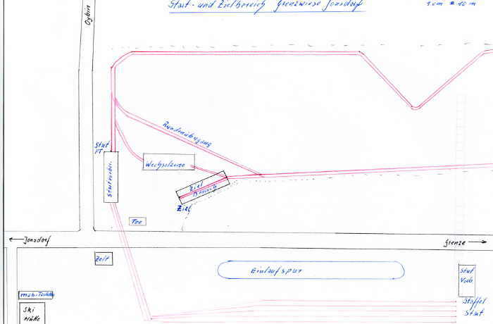Plan des Start- und Zielbereichs Grenzwiese (Zeichnung von Klaus Fichte)
