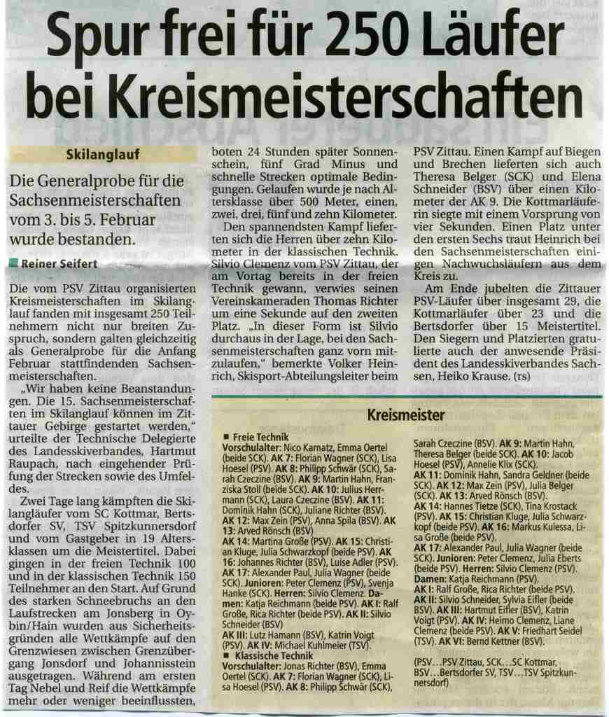 Bericht über die Kreismeisterschaften 2006 , SZ vom 10.01.2006