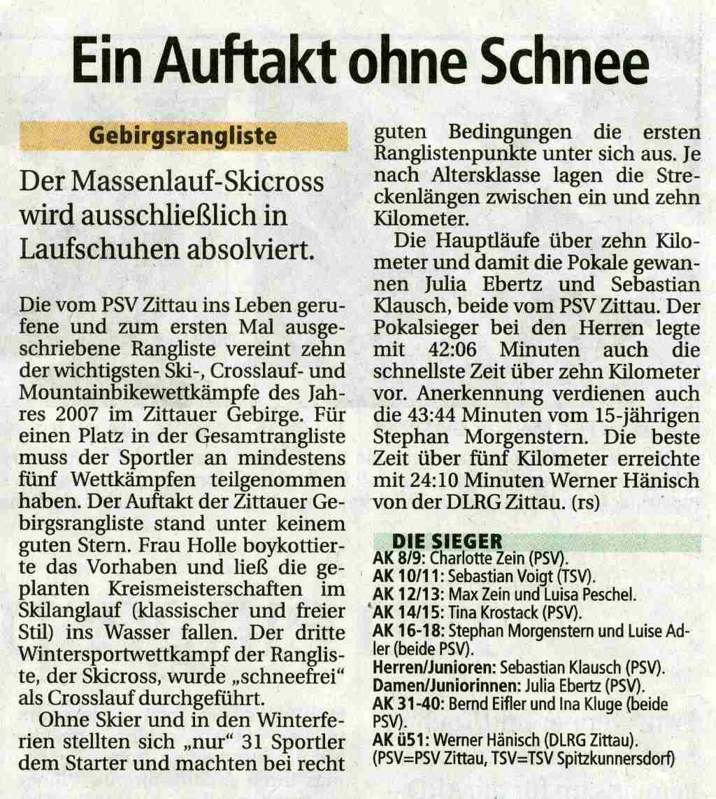 Bericht über den Massenlauf 2007, SZ vom 22.02.2007